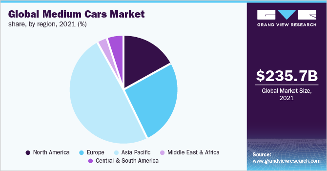 b。2021年,亚太地区以48.6%的市场份额主导了中型车市场。这是由于中/紧凑型汽车在该地区的巨大普及,消费者偏好高。