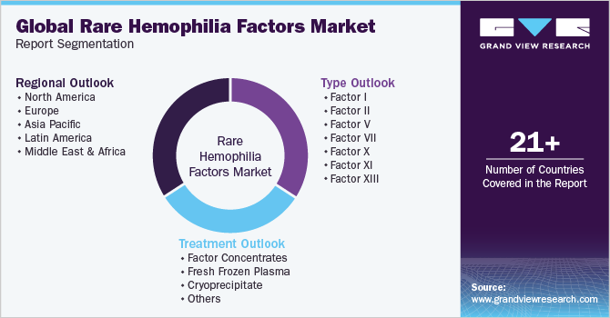 This report forecasts revenue growth at global, regional, and country levels and provides an analysis of the latest trends in each of the sub-segments from 2018 to 2030. For this study, Grand View Research has segmented the global rare hemophilia factors market report on the basis of type, treatment, and region: