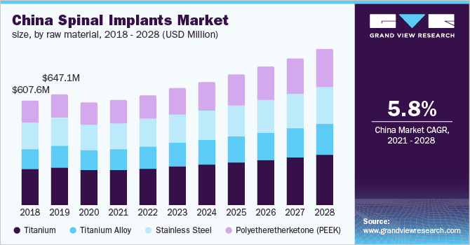2020年,中国以超过31%的收入份额主导了市场,这一增长可归因于发达的医疗基础设施和采用先进技术简化脊柱手术、提高生产力和节约成本的积极前景。越来越多地采用植入物来治疗创伤性脊髓损伤,加上该国老年人口的增长,这是脊柱损伤的高风险,这是推动市场增长的关键原因之一。在过去的十年中,脊柱手术的需求显著增加。在中国等发展中国家,医疗设施的改善和医疗支出的增加为脊柱植入物市场提供了增长机会。