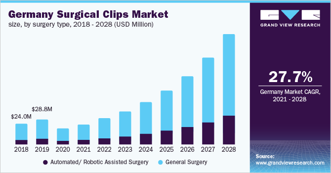 b。从2021年到2028年,全球手术夹市场预计将以26.7%的复合年增长率增长,到2028年将达到23亿美元。