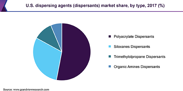 聚丙烯酸酯分散剂是2016年美国分散剂市场中最大的细分市场,并可能在预测期内保持主导地位。在聚丙烯酸酯类分散剂中,聚丙烯酸钠分子量低,用于克服涂料中经常遇到的絮凝和颜料颗粒的稳定性等问题。聚丙烯酸钠极易溶于水,由于其亲水性和热稳定性,它能在较长时间内保持分散剂活性。